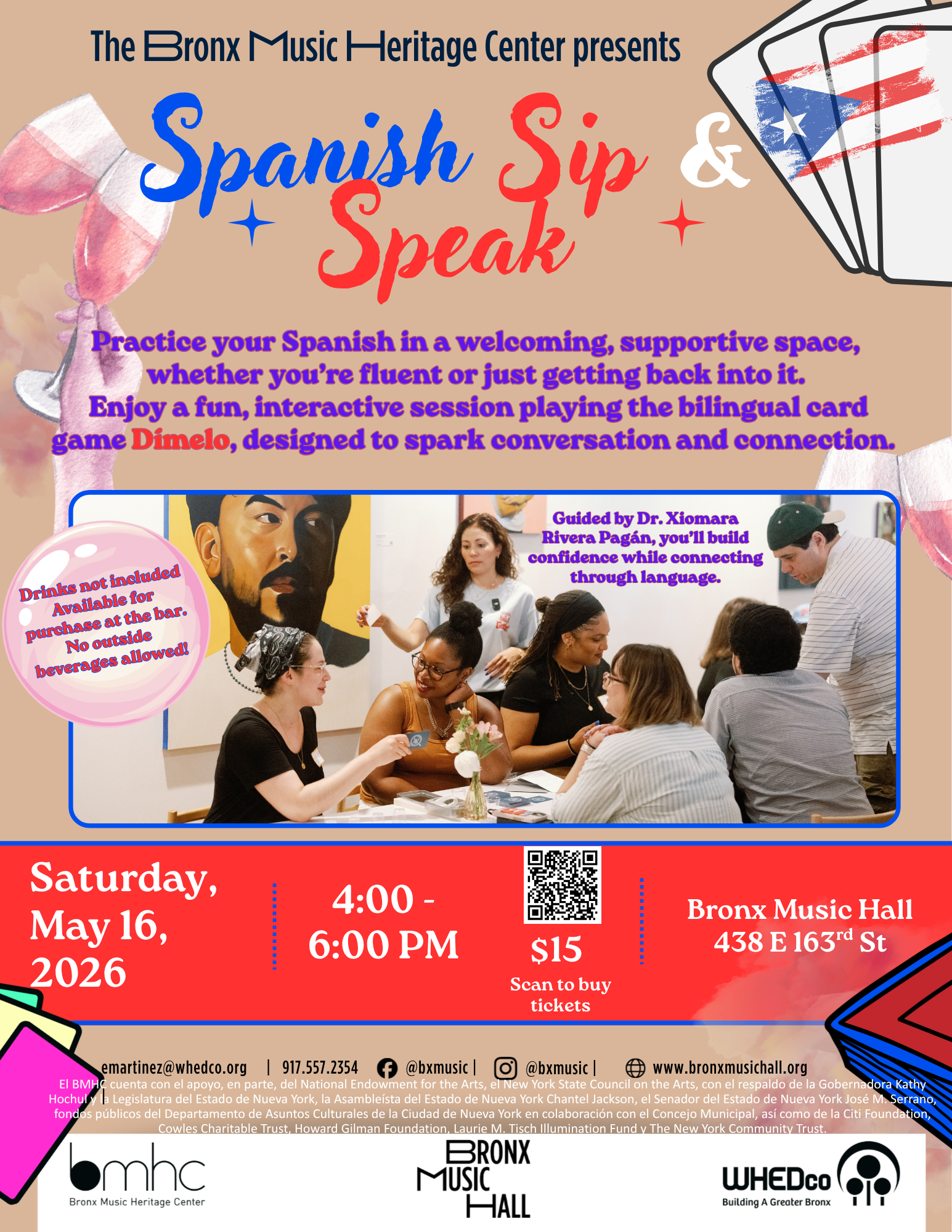 Whether you grew up speaking Spanish or don’t get the opportunity to practice like before, join us in using Spanish in a supportive space. Join us for a fun and interactive event where you can practice your Spanish while playing a bilingual card game (Dímelo) designed to help you connect with friends (new and old) and build your Spanish skills! Dr. Xiomara Rivera Pagán will help you feel confident in your speaking skills and connect language. Drinks aren’t included in the ticket price, but you’re welcome to purchase them at the bar. Please note that outside beverages aren’t permitted.